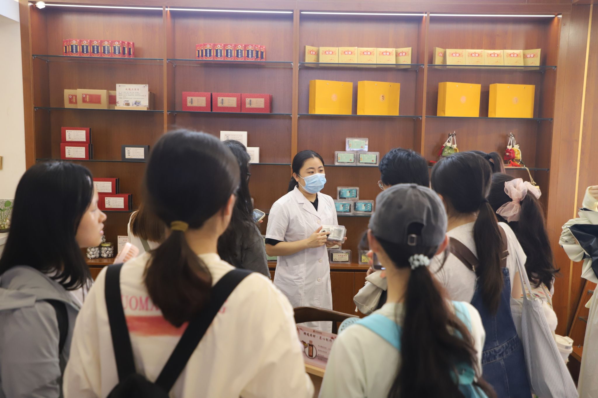 同学们在正骨中药非遗体验区参观