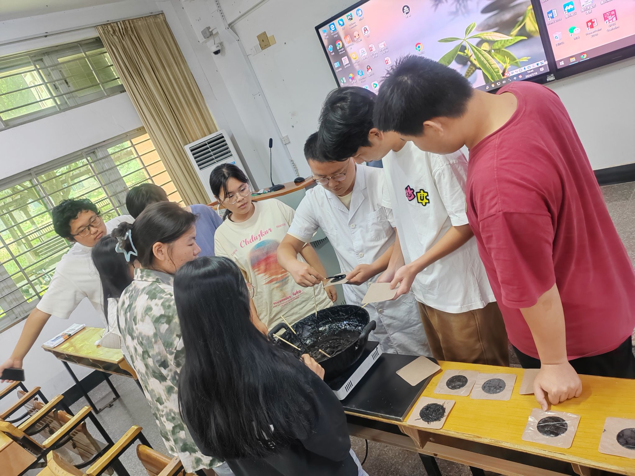 吴药师带领同学们体验正骨吊膏制作过程