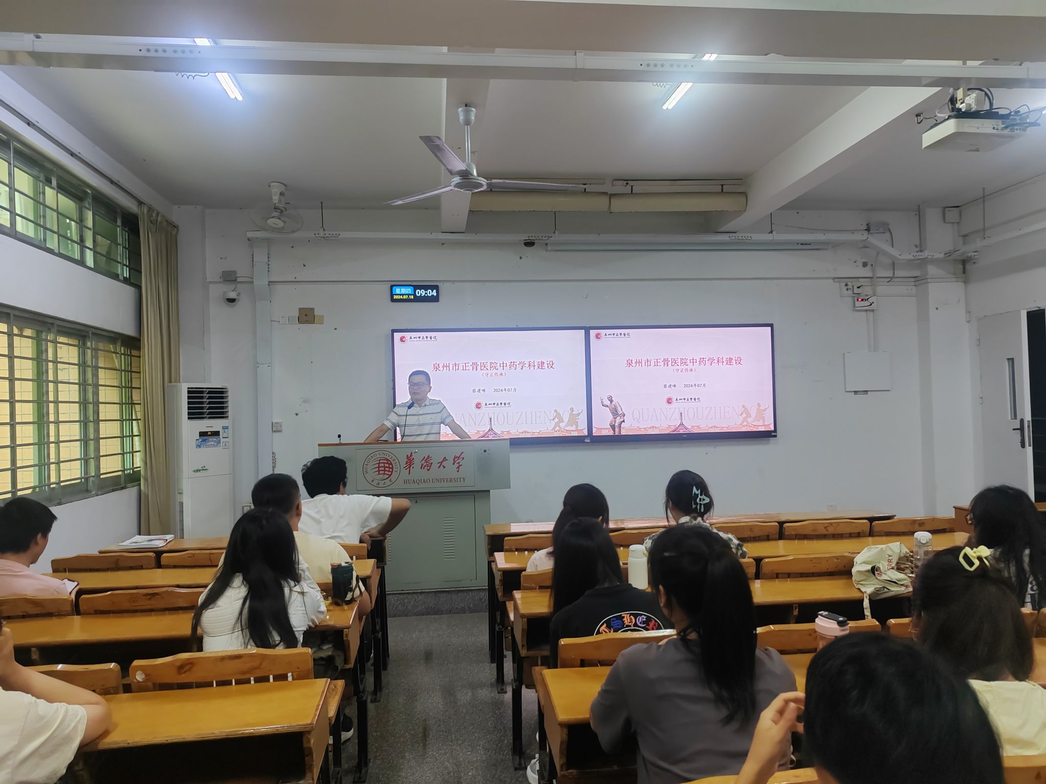 上午,正骨医院药学部蔡建峰主任走进校园为同学们带来了一场内容丰富的讲座。讲座不仅覆盖了中药制剂研发、药事管理等领域,更深入探讨了医药专业学生的就业前景与职业规划,帮助同学们对中医药行业有了更全面的认识,也为同学们未来的职业发展指明了方向。在讲座的互动环节中,同学们有机会亲手体验省级非物质文化遗产——正骨医院吊膏的制作过程,深刻感受到了中医药的深厚底蕴和独特魅力。