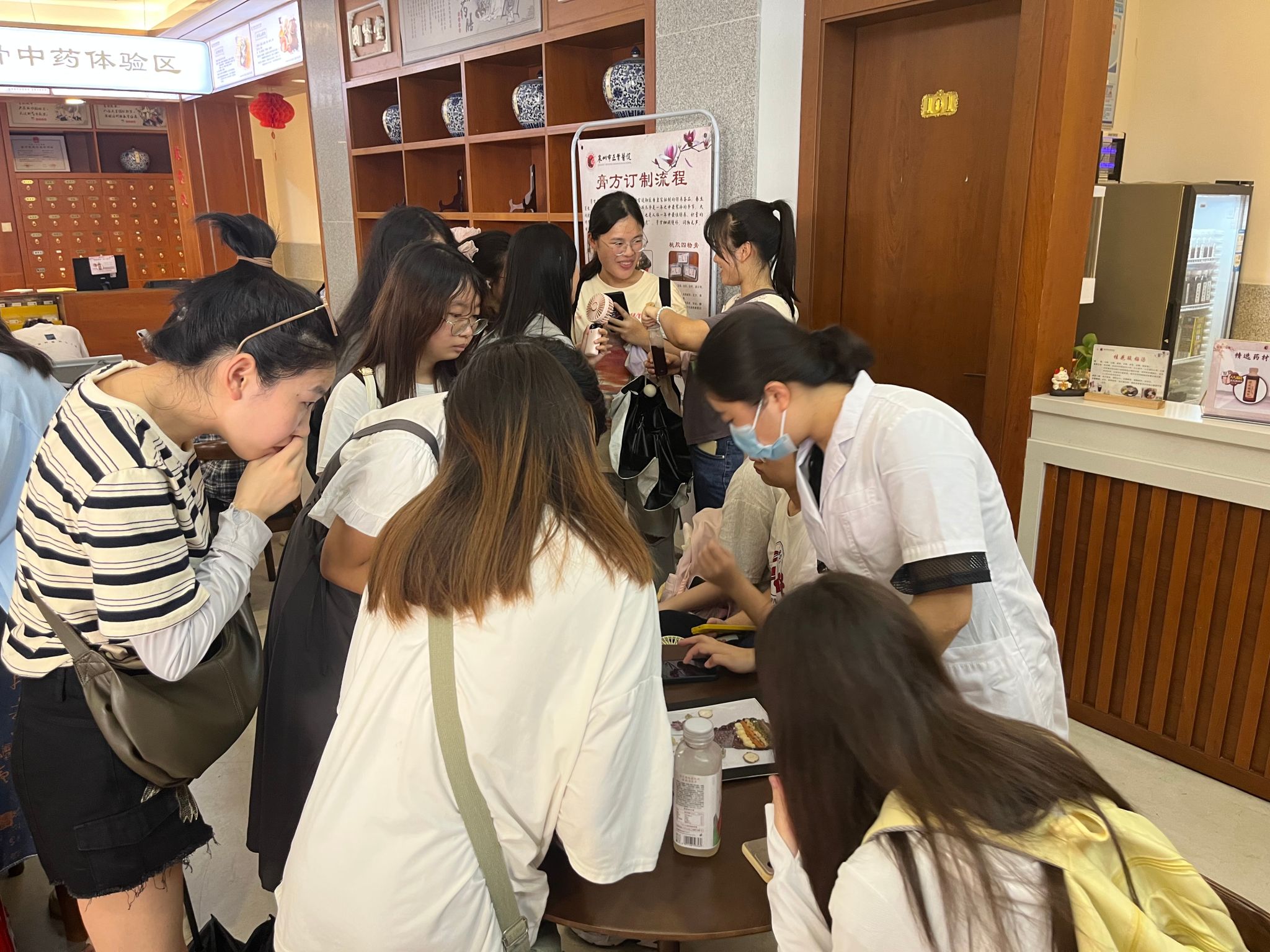 同学们在正骨中药非遗体验区参观