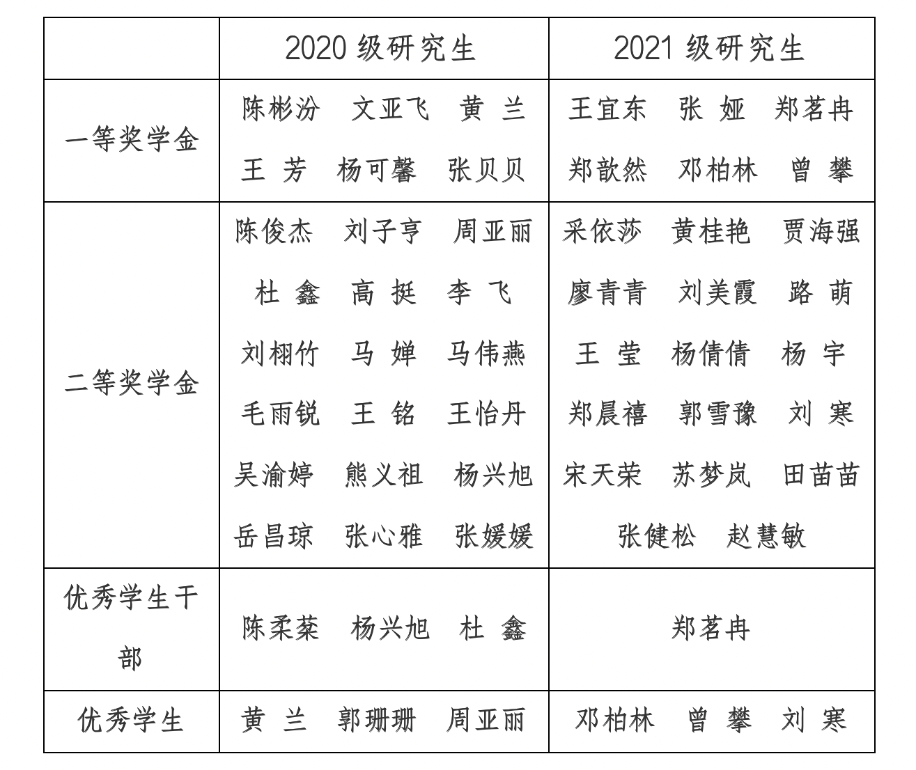 根据学校文件精神,经学生个人申请,班级奖学金评议小组、学院学生工作委员会逐级评审,现将研究生学业奖学金、校级荣誉称号拟推荐人选公示如下: