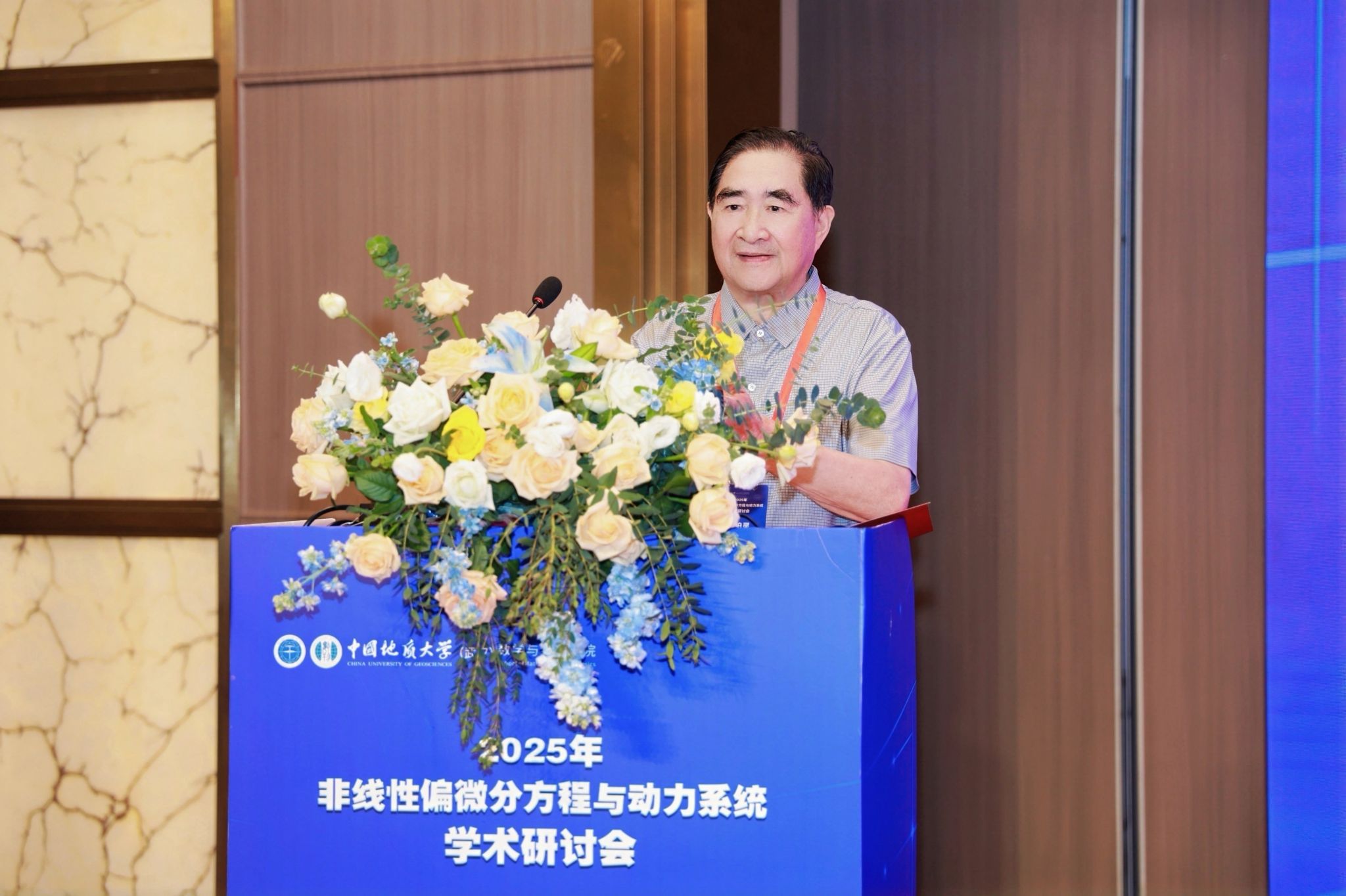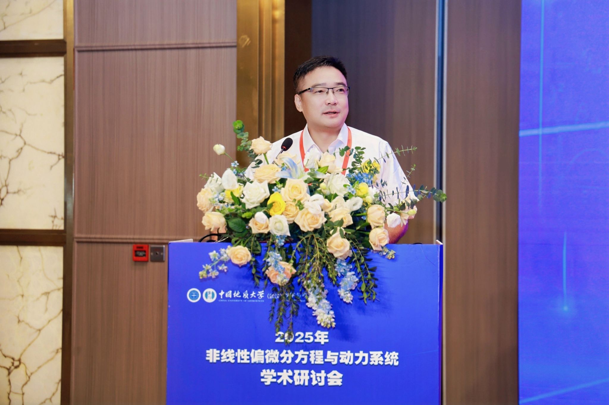研讨会开幕式由中国地质大学(武汉)beat365平台官方网站院长魏周超教授主持,中国地质大学(武汉)副校长王力哲教授,中国科学院院士、著名应用数学与计算数学专家郭柏灵院士出席开幕式并致辞。王力哲副校长代表学校对远道而来的参会嘉宾表示热烈欢迎,详细介绍了学校及beat365平台官方网站近年来在学科建设、人才培养、科技创新等方面取得的突出成果,同时强调此次会议对深化微分方程领域学术交流、推动学科交叉融合、进一步提升beat365官网在偏微分方程与动力系统领域研究水平的重要意义。