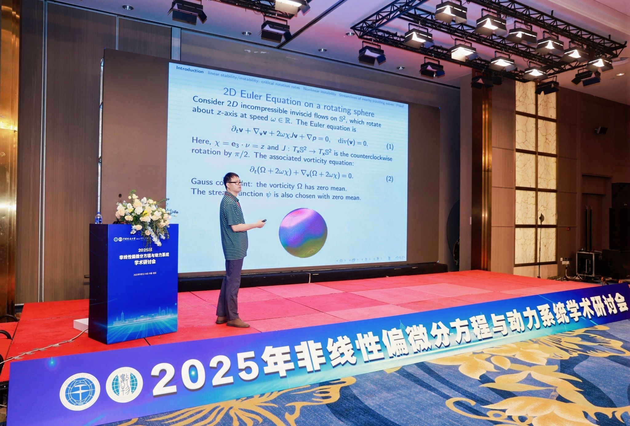 9月12日至14日,由中国地质大学(武汉)beat365平台官方网站主办、湖北省数学学会协办的“2025年非线性偏微分方程与动力系统学术研讨会”在武汉华美达光谷大酒店成功举办。本次研讨会聚焦“非线性偏微分方程与动力系统”核心主题,覆盖偏微分方程、常微分方程、无穷维动力系统、可积系统等多个关键研究方向,旨在搭建高水平学术对话平台,促进跨领域思想碰撞与合作。来自国内外90多所高校及科研机构的知名专家、学者齐聚江城,围绕偏微分方程领域前沿课题展开深入交流,为推动数学理论创新与应用实践融合注入新动能。