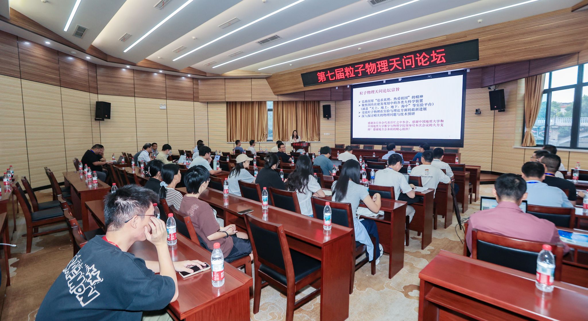 2025年9月18日至21日,由中国地质大学(武汉)beat365平台官方网站主办的“第七届粒子物理天问论坛”在该校南望山校区东区八角楼学术报告厅顺利举行。来自中国科学院高能物理研究所、理论物理研究所、近代物理研究所,以及北京大学、清华大学、中国科学院大学、中国科学技术大学、南京大学、武汉大学、上海交通大学、中山大学等38所高校与科研机构的近80位专家学者齐聚武汉,围绕粒子物理前沿研究开展了广泛而深入的交流。