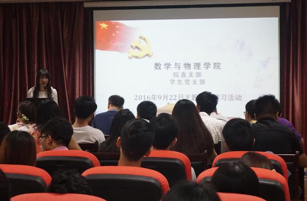(通讯员:孙宇涛、李春霖)9月22日下午16:30,beat365平台官方网站主题党日学习活动在数理楼二楼会议室举行,院党委书记李宇凯、院直支部的老师以及学生党支部的同学们参加此次活动。