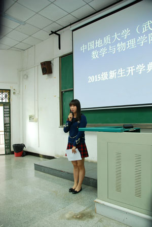 9月13日上午9点,学院2015级新生开学典礼在教三楼208教室如期举行。中国地质大学副校长赖旭龙、beat365平台官方网站院长刘安平、党委书记李宇凯、副院长程永进、副院长张光勇、副院长黄刚、党委副书记李杰、各系部主任、学务指导老师以及班主任应邀参加了本次开学典礼活动。