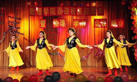 本次晚会节目形式多样,内容丰富,充分展现了数理学子多才多艺的一面。由街舞社成员带来的开场舞《show up》将晚会气氛推上了一个小高潮;经典歌曲串烧,流行舞蹈也都依依登场,精彩的表演让全场观众随之欢呼。改编自《新闻联播》,讲述了许仙与白娘子的爆料传奇的节目,笑料不断,赢得掌声阵阵。而随后的古筝独奏,萨克斯演奏,更是博得观众连连喝彩。在节目接近尾声时,由少数民族预科班新疆同学表演的维吾尔族舞蹈为整场文艺晚会增添了一份异域风情。最后,在全体演员合唱的校歌声中,晚会圆满落幕。