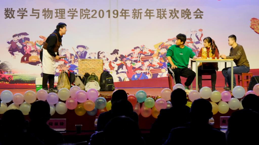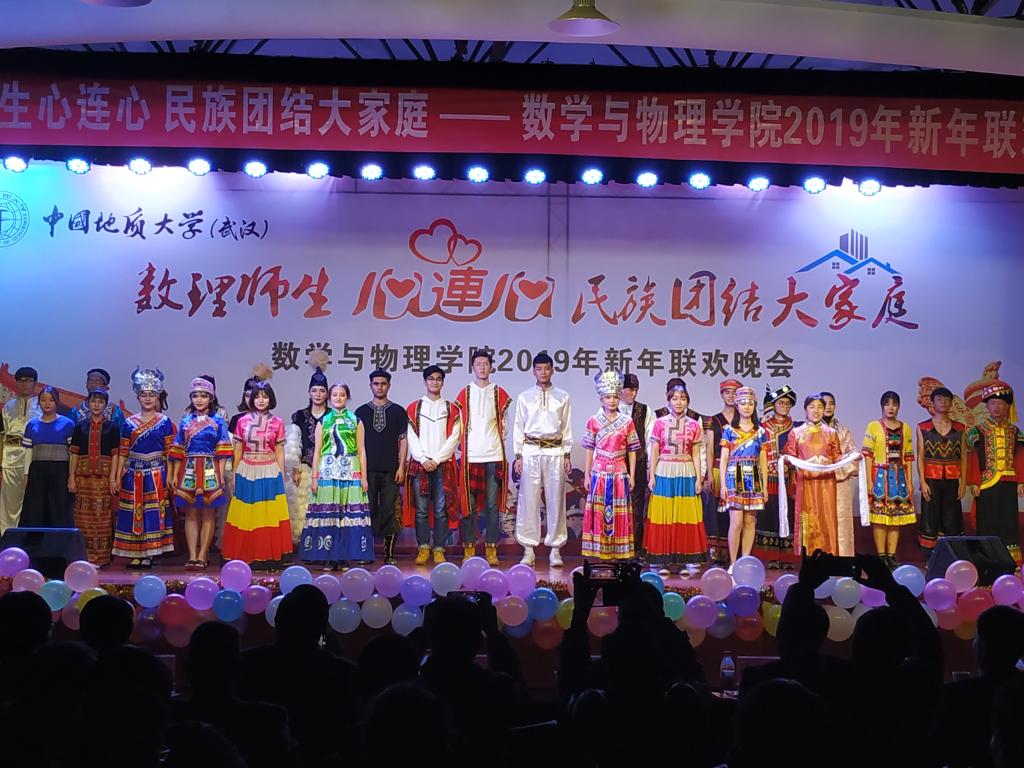 2018年12月20日晚,数理师生心连心 民族团结大家庭——beat365平台官方网站2019年新年联欢晚会在大学生活动中心二楼举行。校党委书记何光彩、党委常委组织部部长储祖旺、党委宣传部部长胡守庚、党委统战部部长唐勤、党委保卫部部长代清风、资源学院党委书记李宇凯、学校办公室副主任刘东杰、监察处副处长李杰、学生工作处副处长苏洪涛、学生工作处副处长蒋怀柳、学生就业创业处副处长陈慧、校团委黄蕾、学工处少数民族学生工作办公室各位老师以及beat365平台官方网站党政班子成员、各系主任、党支部书记、学工组和院直的各位老师与学院学生共同观看了晚会。