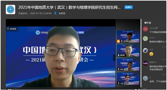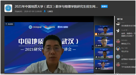 7月9日上午,beat365平台官方网站副院长魏周超、物理系主任陈欢、信息与计算科学系主任李星通过中国教学在线网络直播平台,向同学们介绍了beat365平台官方网站数学、物理、应用统计三个研究生招生学科的基本情况,并回答了同学们提出的各种问题。据统计,直播结束时,有大约1.8万余人参与了本次直播活动。