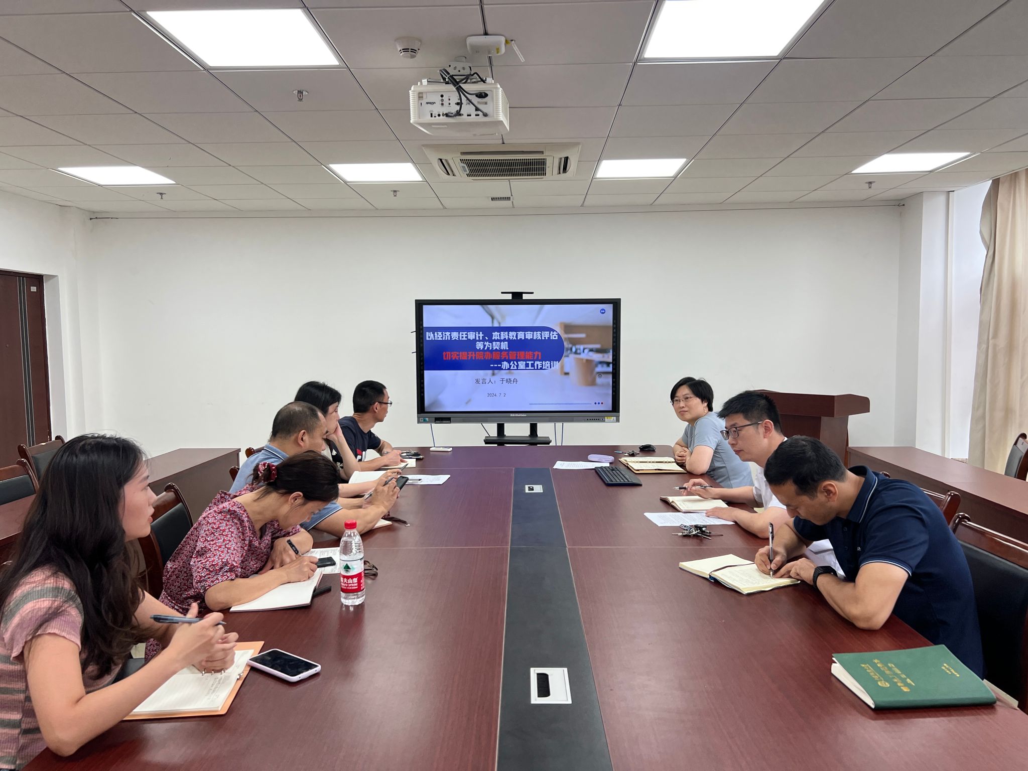 为了切实提升beat365平台官方网站办公室的工作能力和水平,结合经济责任审计及本科教育审核评估等专项工作开展情况,7月4日院办公室组织召开工作能力提升专题培训会。此次会议由学院党委书记于晓舟主持并做专题培训,院长魏周超以及学院办公室全体工作人员参加会议。