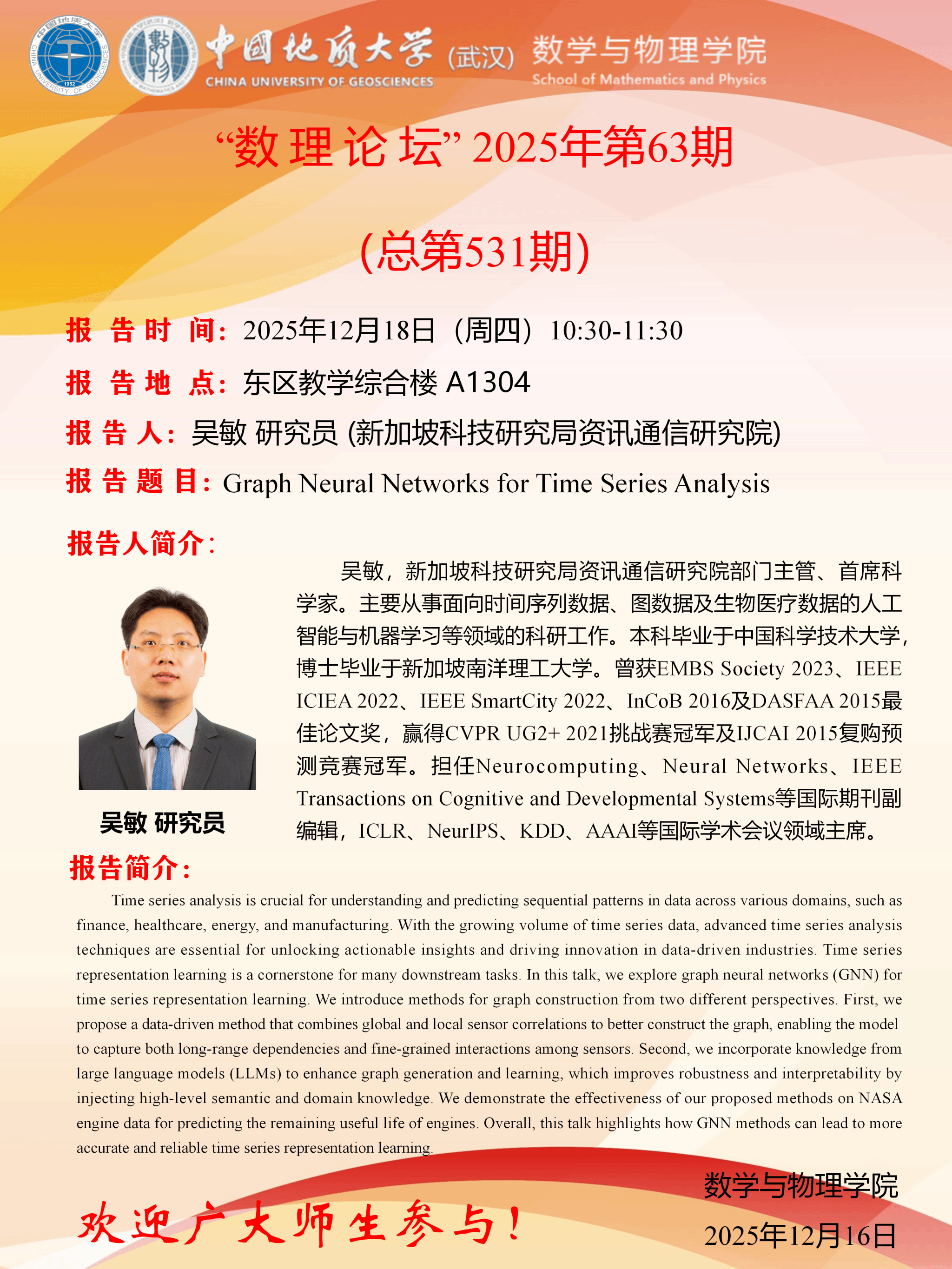 2025年12月18日吴敏研究员学术讲座:Graph Neural Networks for Time Series Analysis