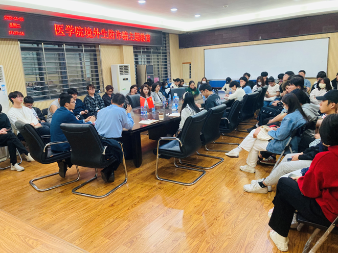 首先,党委书记武玉洁在讲话中强调了防诈骗的重要性,他表示:“作为境外生,你们面临着语言和生活习惯的挑战,在这个过程中要更加警惕,防止诈骗分子利用我们的弱势进行攻击。”同时,他也希望学生们能够增强自我防范意识,掌握防范技巧,提高自我保护能力。