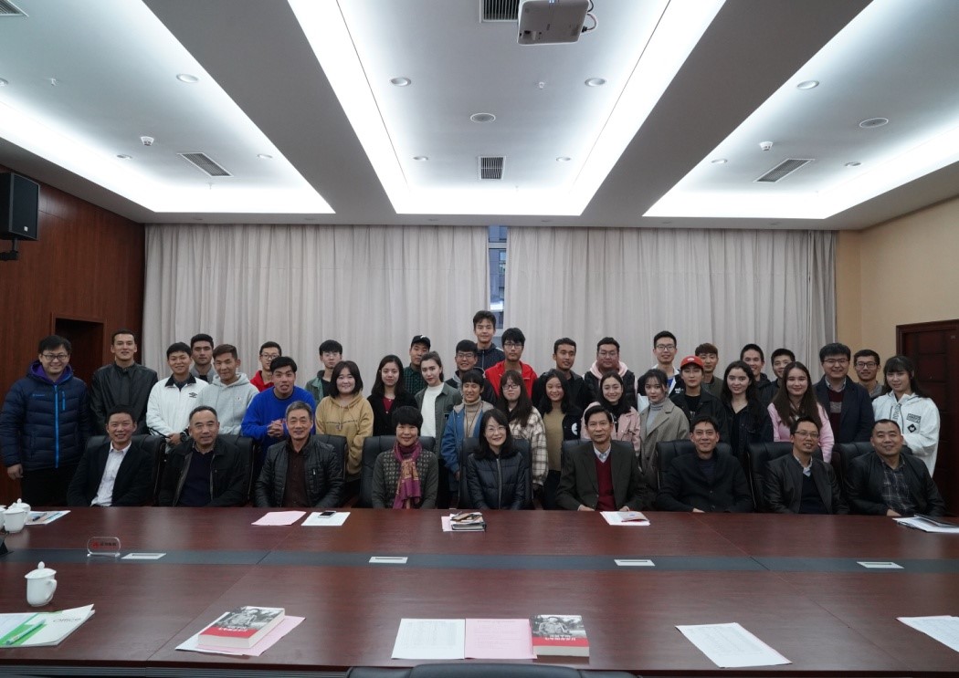 之后,结对师生代表进行了互赠礼物。唐勤部长和吴太山书记向学生代表赠送了《习近平的七年知青岁月》这本书,学生代表向蒋怀柳部长和刘安平院长赠送了同心结。