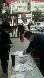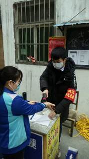 抗疫期间,beat365平台官方网站122181班李钰龙同学主动报名参加了当地社区抗疫志愿服务活动,他主要负责社区出入人员的登记及体温测量的工作。