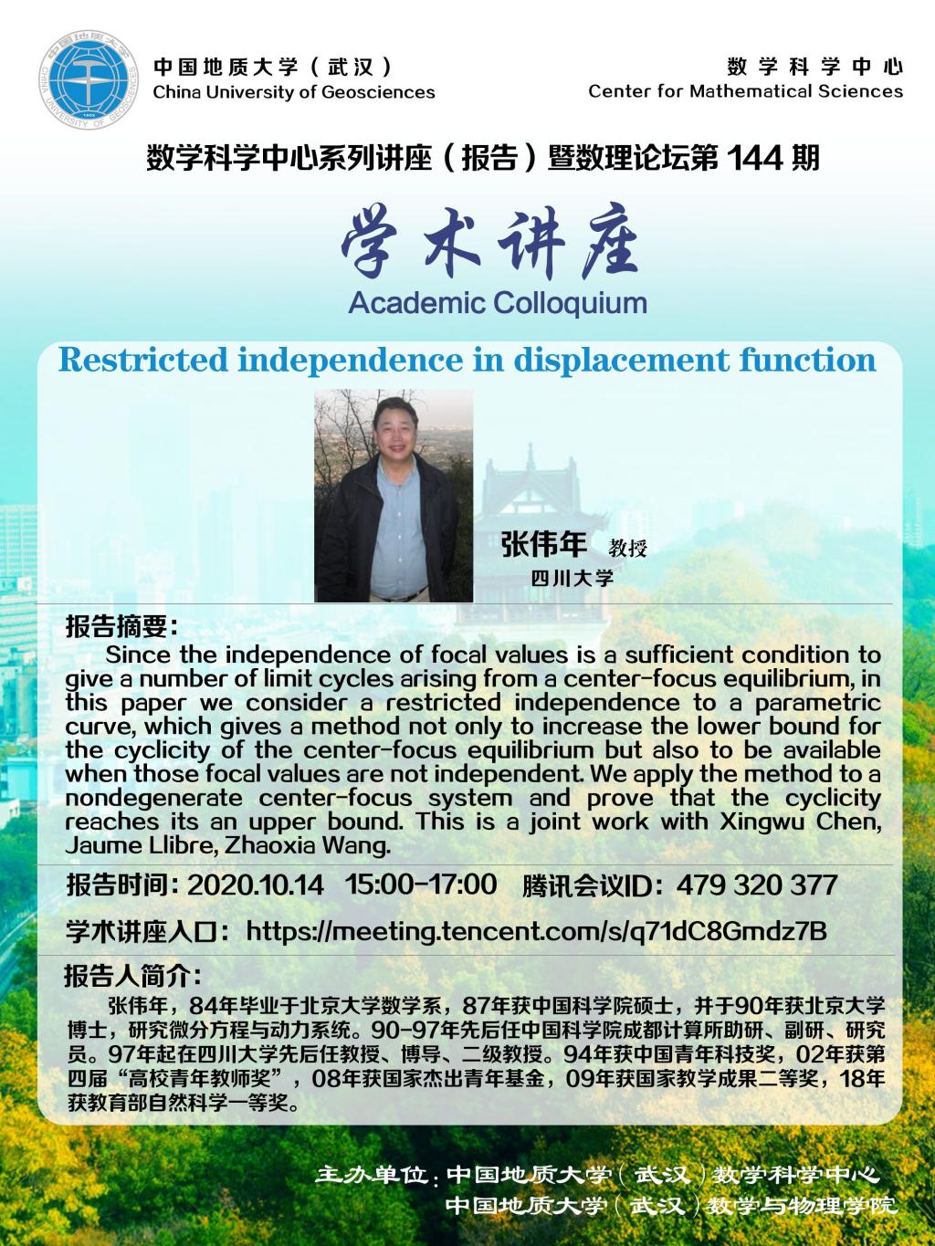 中国地质大学 数学科学中心 版权所有 地址:湖北省武汉市鲁磨路 388号 邮编:430074 鄂ICP备15021562号-1 鄂公网安备 42011102004169号